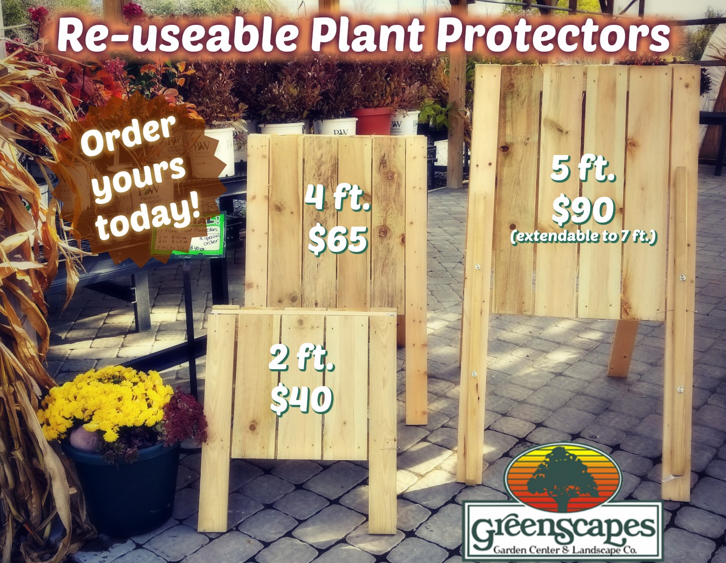 Don’t forget about your landscaping… Order your plant protectors today and keep the heavy snow and ice off your delicate plants this winter.